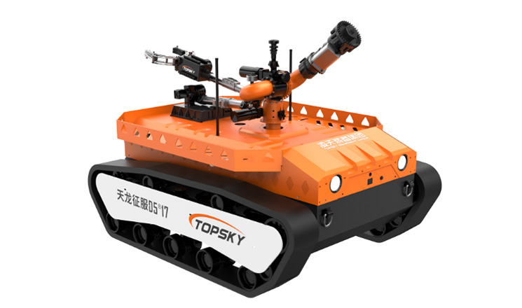 履帶式防爆機器人底盤采用鋰電池電源作為動力源,使用無線遙控的方式遠距離操控,裝載6自由度排爆機械手能實現不同角度旋轉,最大可抓舉50KG的重物,水平展開最大可抓取10KG重物,機械臂裝載爆炸物銷毀器,可現場摧毀爆炸物,采用履+單擺臂結構,能適應各種地形快速作戰部署。同時本機配備雷達生命探測,通過借助于電磁波可以穿透一定厚度的遮擋介質,探測到人類存活者的生命信息,通過檢測人體生命活動所引起的各種微動如呼吸、心跳等信息,達到尋找存活者的目的。