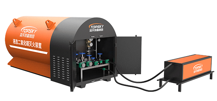 液態二氧化碳滅火裝置,采用平板車為運載平臺,搭載液態二氧化碳滅火模塊,采用液態二氧化碳為滅火劑,運輸至井下火區近附,經自增壓調控系統實現罐內穩壓,并通過遠距離輸送管路將液體從罐內向密閉火區噴射,利用其急速膨脹氣化和吸熱效率高的物理特性,可實現惰性降氧,吸熱降溫,吸附阻化等功能,從而可快速進行井下煤層自燃火災的預防與撲滅等。