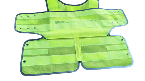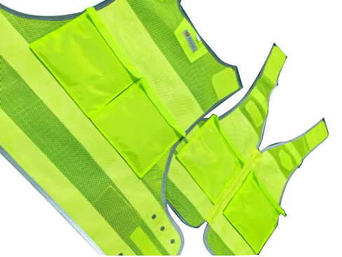 具有整潔美觀,平服的特點,線路規整,左右對稱,無開線、斷線、跳線、毛露、線頭、污漬、殘疵。產品基底顏色為熒光黃色;反光帶顏色為銀白色;縫紉線顏色應與縫合部位的基底材料或反光材料顏色相匹配;前后晶格標識可絲印定制文字