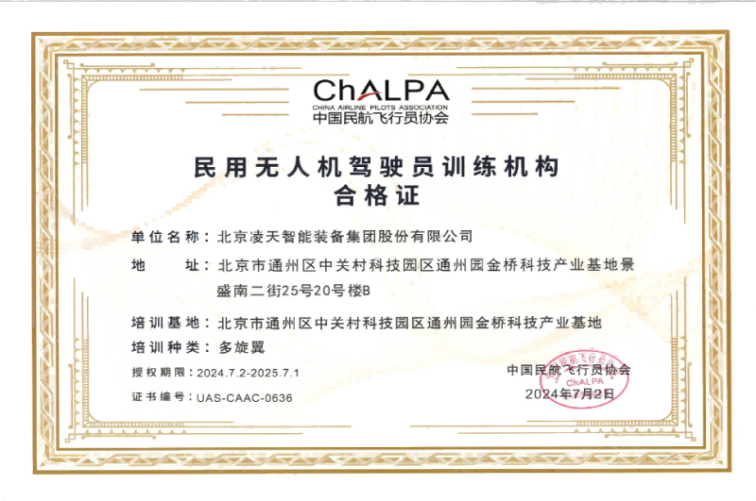 | 資格類 | 民用無人機駕駛員訓練機構合格證(北京凌天) | |