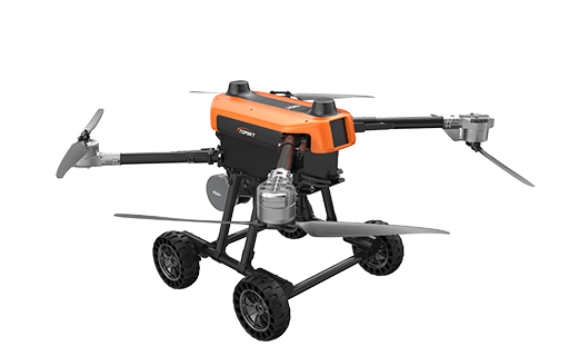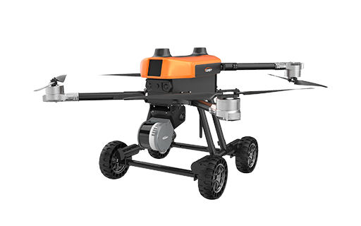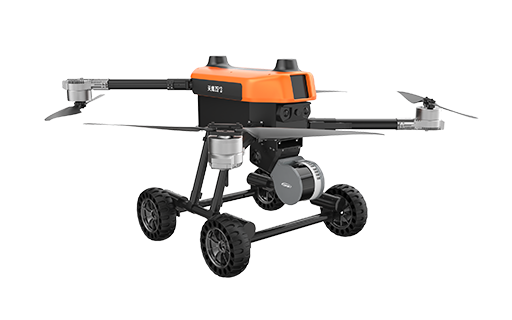 本無人機為北京凌天智能裝備集團研發的陸空兩棲三維偵測建模無人機,采用四旋翼機身設計,載重大,續航長,并且機體折疊標準化負載接口。同時,該無人機具備陸空兩棲功能,可以在地面行駛。